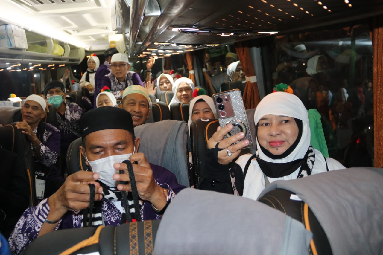 Beliau berharap para jemaah dapat menjadi teladan di tengah masyarakat dan menjadi haji yang mabrur. Sambutan tersebut pun disambut penuh haru oleh para jemaah, khususnya yang berada di dalam bus pertama.